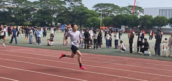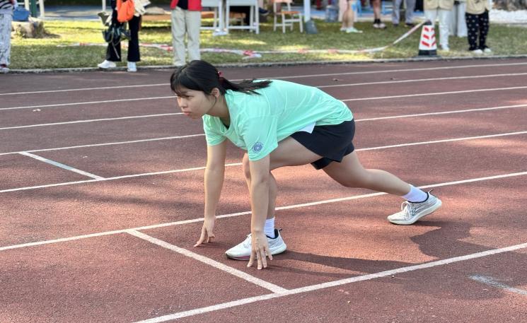 随着发令枪清脆作响,邓雅琪瞬间弹射而出,起跑动作干净利落。她身姿挺拔,步频轻快稳健,每一步都精准踏在发力点上,长发随奔跑惯性向后扬起,如一道灵动风景线划破赛场。赛道旁,师生们的呐喊助威声此起彼伏,邓雅琪目光坚定锁定终点,双臂有力摆动,脚下步伐愈发急促却不失章法。两百米征程在全力冲刺中飞速缩短,她迎着阳光、逆着微风,将全身力量汇聚于双腿,带着不服输的韧劲奋勇向前,最终奋力冲过终点线,用尽全力赛出青春风采。