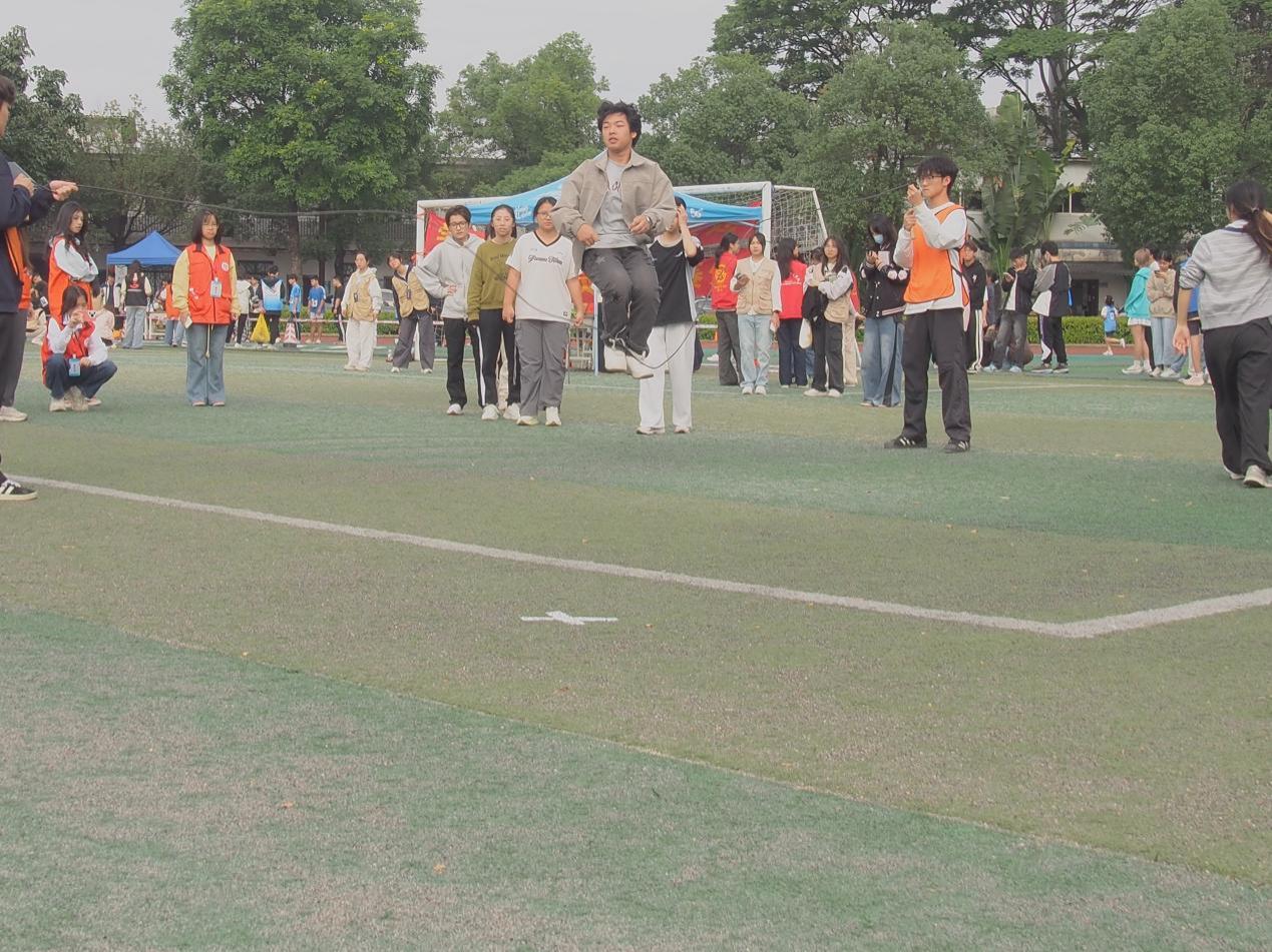 随着裁判一声哨响,比赛正式开始。第一位上场的盘筱瑜同学脚步轻盈,节奏分明,绳影在阳光下划出优美弧线,赢得阵阵掌声。另一位选手庄丽霞则以沉稳的节奏和扎实的基本功赢得评委赞赏。她表示:“能把每一次跳都做到最好,就是最大的满足。”