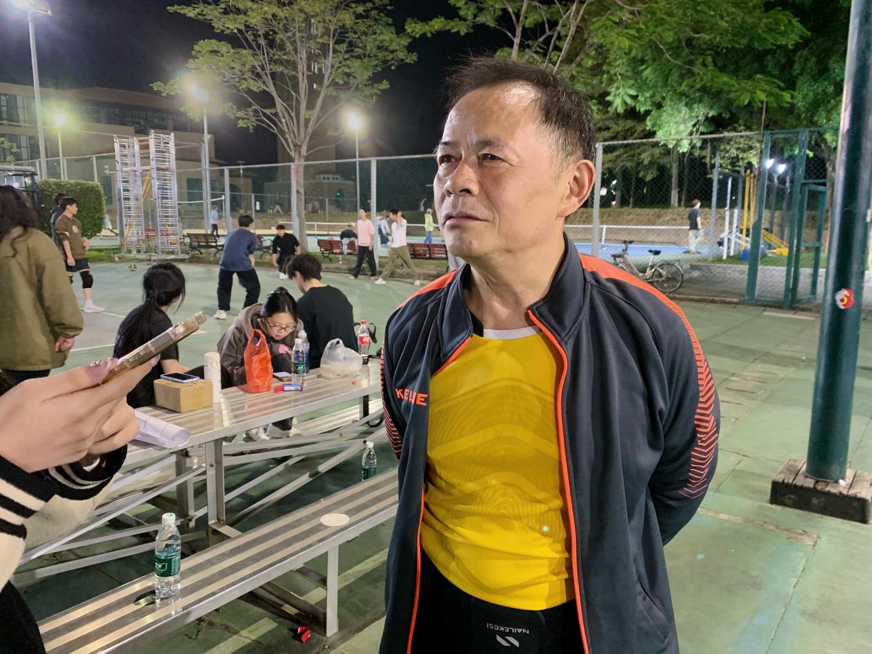 比赛结束之后,文化与传播学院传媒中心的记者有幸采访到了来自文传保卫处联队的教练黄柏刚教授和刘颖教授。面对记者的采访,两位教授都表现得非常从容淡定。当被问及赛后心情时,刘颖教授表示自己已经退休,但是还能够与同事们共同参与此次比赛,他感到非常高兴且荣幸。随后,谈及此次比赛感受时,刘颖老师笑了笑。他认为各位老师配合得十分默契,不论结果如何,大家都会相互加油打气,比赛的氛围相当不错。