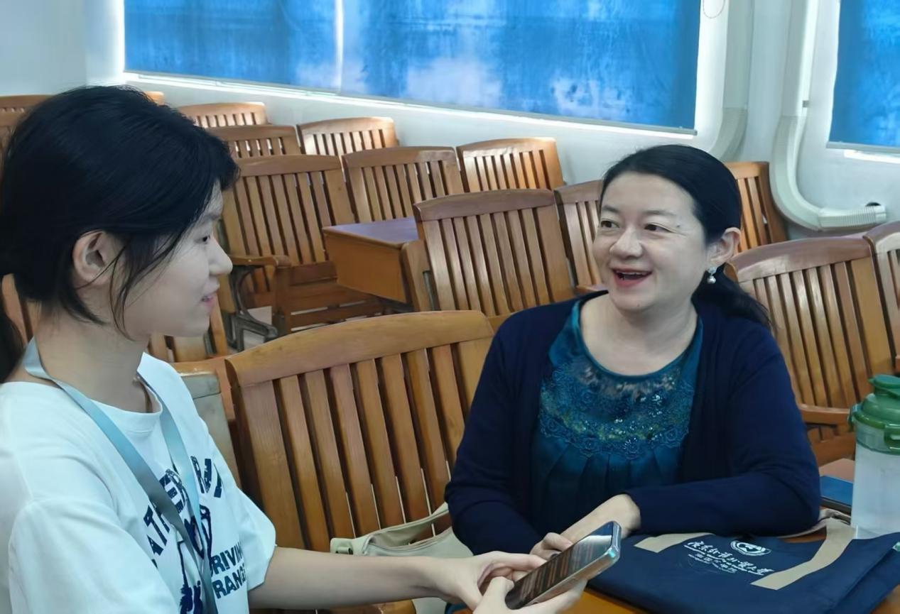 (冯薇老师和记者交谈 陈嘉欣/摄)