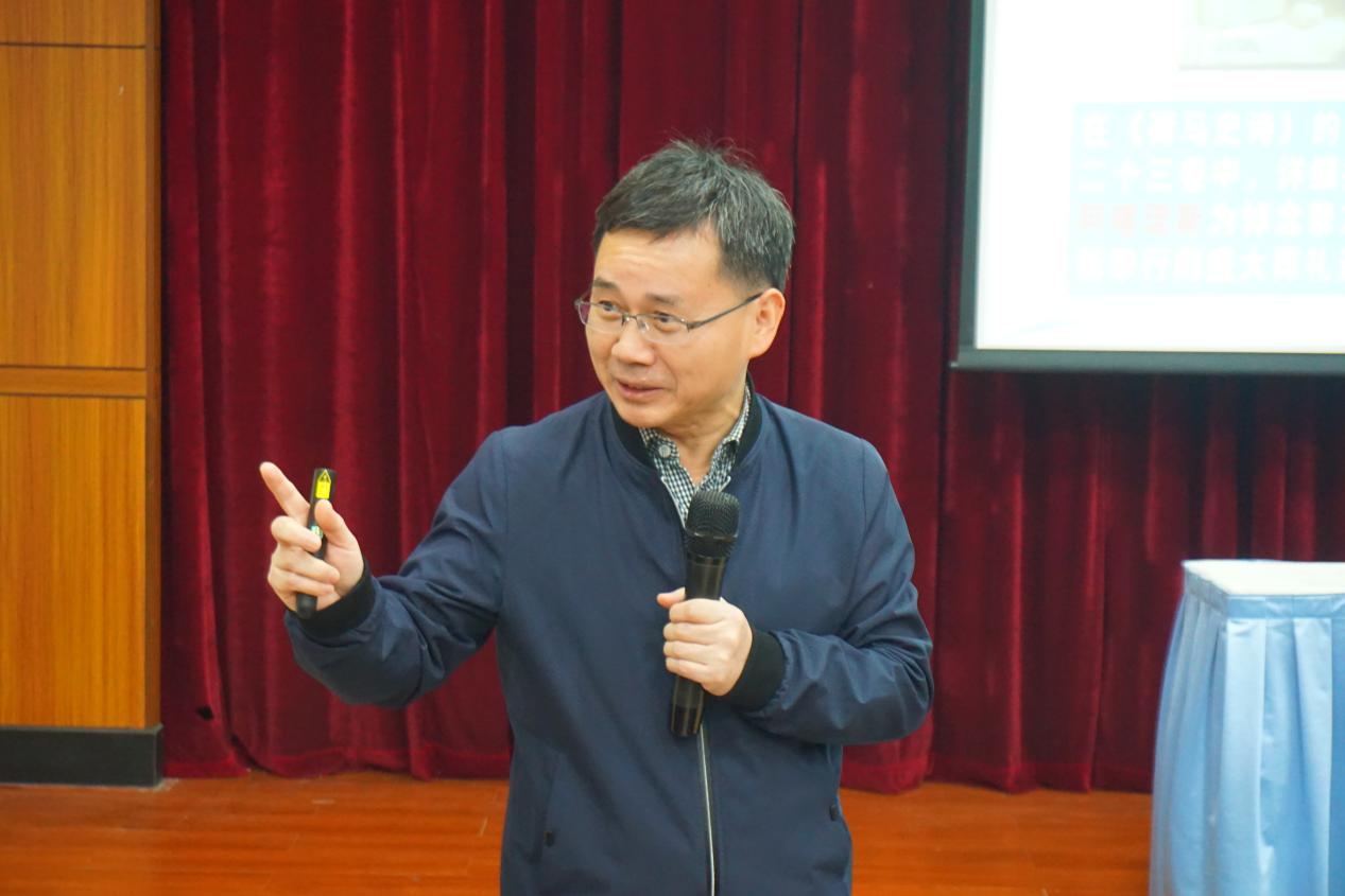 (张德胜教授围绕“体育与戏剧的审美结构比较”展开演讲 张睿洋/摄)