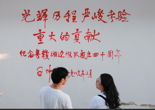 随后,全体成员前往黄沙坑革命遗址纪念馆,进行寻迹黄沙坑现场学习。大家怀着崇敬的心情依次步入了展厅,先后参观了星星之火、抗日烽火、黎明曙光等主题展室。馆内珍藏的一件件斑驳的革命文物、一张张泛黄的历史照片、一份份详实的文献资料,无声地诉说着那段烽火连天的峥嵘岁月。大家驻足于革命先辈使用过的枪支、生活用具前仔细端详,凝神聆听东江纵队和粤赣湘边纵队在黄沙坑一带浴血奋战的英雄事迹,切身感受到革命先辈们坚定的理想信念和不怕牺牲的革命精神,进一步深化了对“实干担当,为民奉献”的理解。红色遗址的现场学习让大家在浸润式体验中接受精神熏陶、涵养家国情怀,以红色美育丰富五育并举内涵,让美育融入红色教育,在感悟革命精神中提升审美素养和人文情怀。