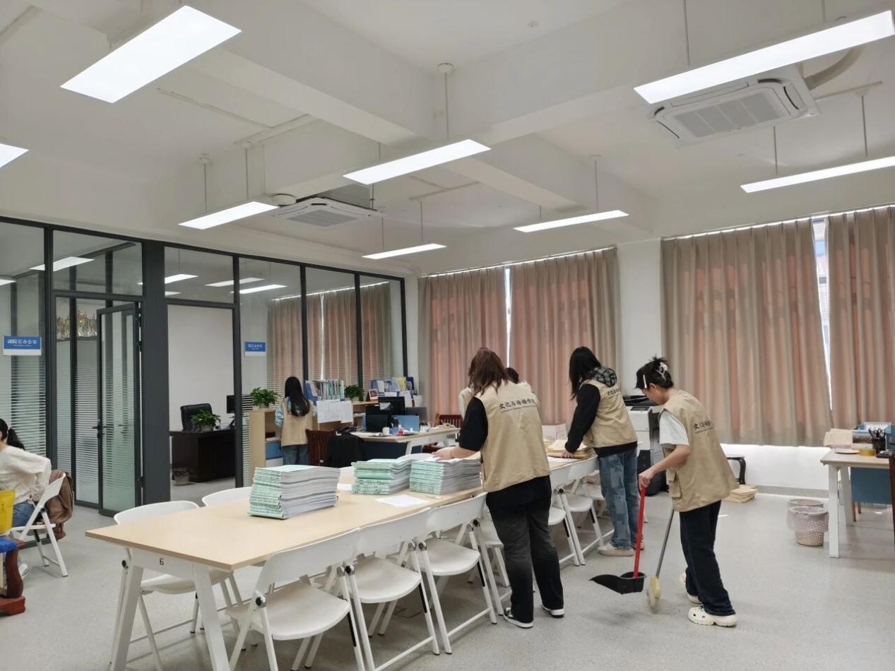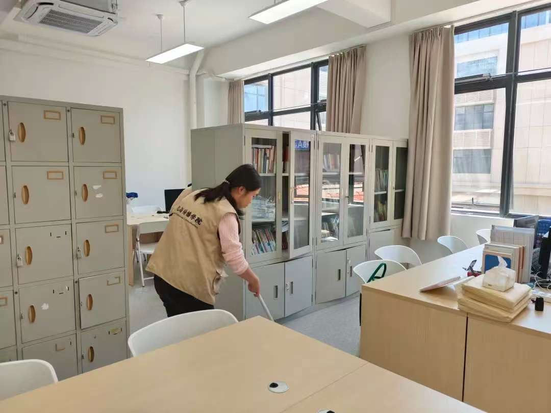 活动中,校内组同学手持清洁工具穿梭于教师办公室与文教楼周边,擦拭桌椅、清理窗台、分类垃圾,连角落的纸屑也不放过,让教学区域焕然一新。当阳光毫无保留地穿过明净的玻璃,洒满书桌,我们仿佛听见了自然的呼吸,也看见了心中那份对绿色未来的承诺,在劳动的汗水中生根发芽,熠熠生辉。此次活动不仅是一次劳动实践,更是一堂生动的“行走思政课”。