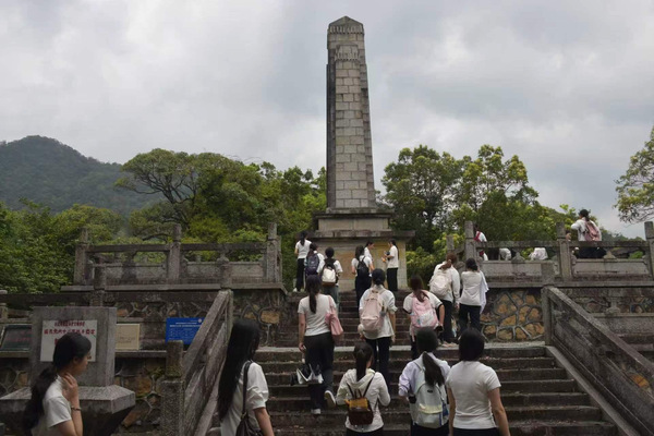 (师生徒步上山到达纪念碑 熊少愉/摄)