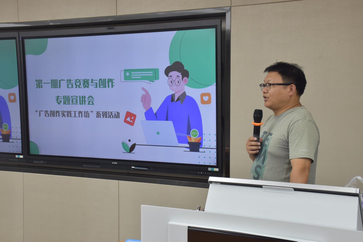 宣讲会伊始,主持人胡博老师登台致辞,清晰阐明了本次活动举办的核心价值。他表示此次宣讲会是对广告专业核心赛事“大广赛”以及“学院奖”的系统解读,鼓励大家主动了解赛事并且积极参与到此次广告竞赛当中。同时,他也呼吁大家将所学经验广泛传播,让广告竞赛的魅力能够吸引更多来自不同专业的同学。