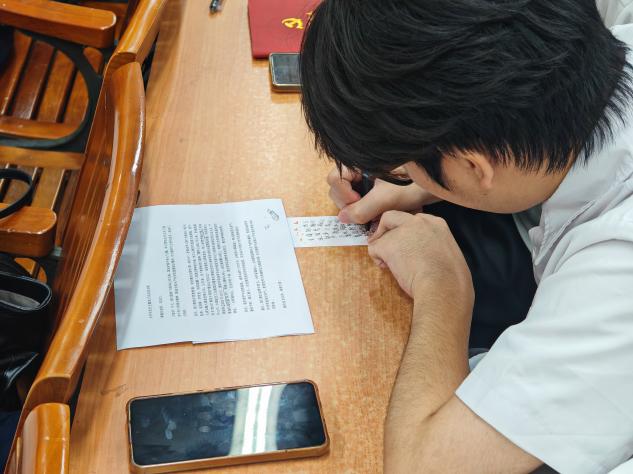 践诺展示环节,全体同志认真书写主题书签,把学习感悟与国家安全承诺写进书签,并将书签悬挂形成 “承诺展示墙”,以文字明志、以书签践诺。最后,全体同志集体宣誓,以铿锵誓言作出守护国家安全、传承中华文脉的庄严承诺。