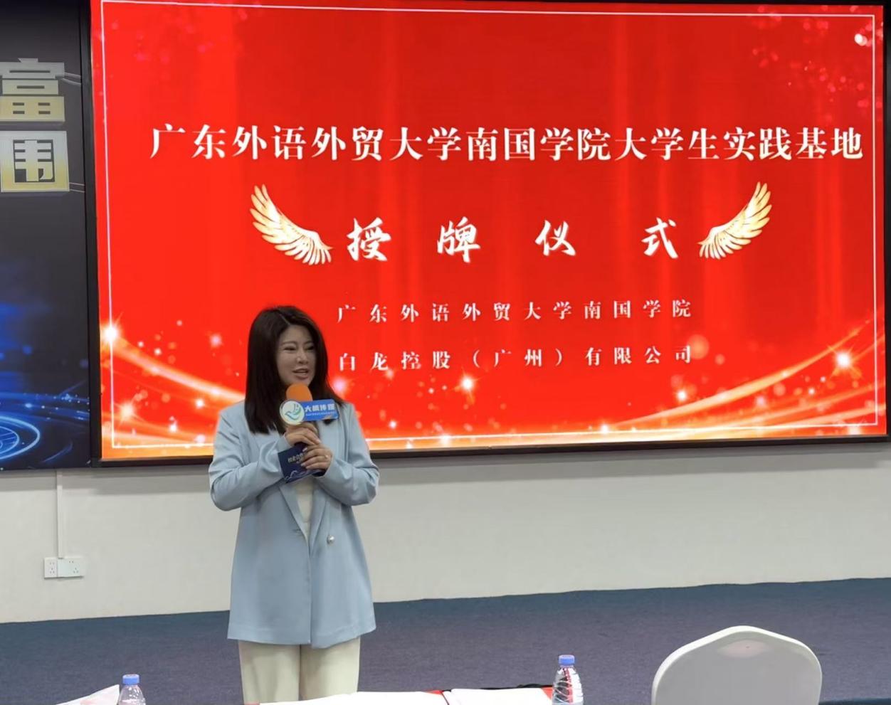 “广东外语外贸大学南国商学院实践教学与就业基地”授牌现场