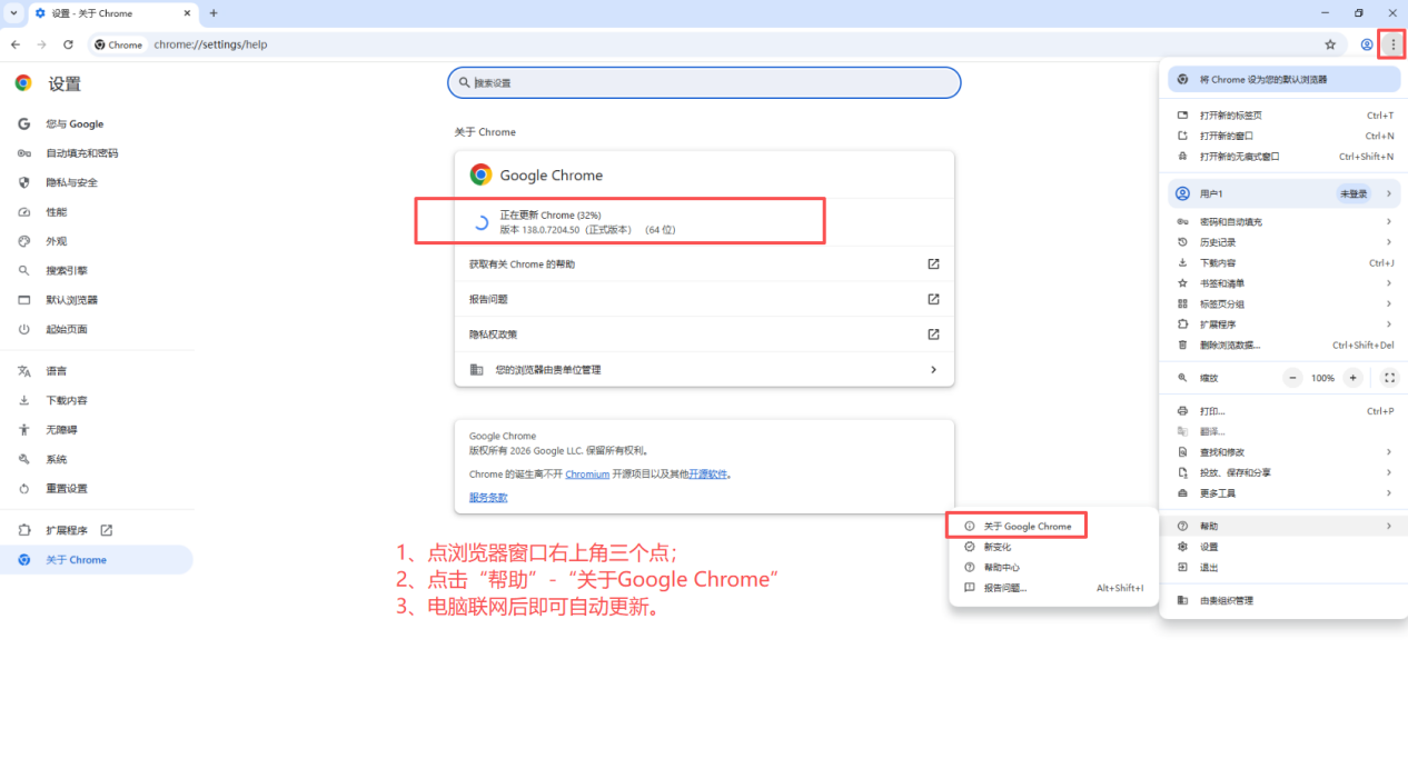 浏览器将自动检测并更新至最新版本(请确保设备已联网);