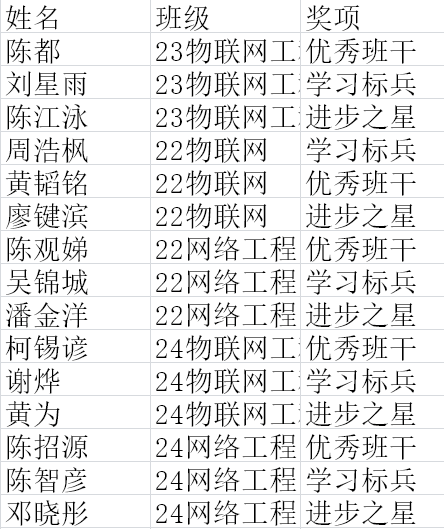 “三个一”奖项:奖励“一名优秀班干”“一个学习标兵”“一名学习进步最佳学生”。此奖项设立是物联网与网络工程系专项奖。