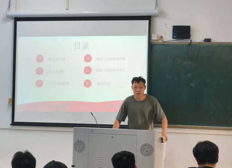 辅导员针对不同年级学生关注的参军发展前途、学历提升、就业保障、经济补助以及其他优待政策事项,进行了详细的讲解和现场互动答疑。