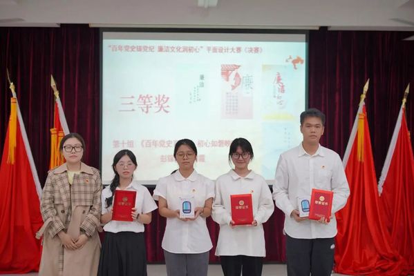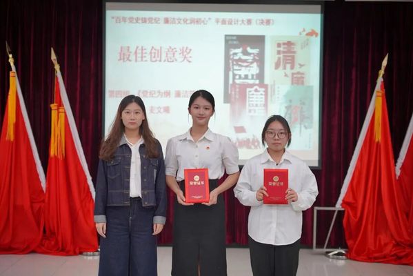 为确保评审公平公正,大赛组建了由2名专业教师、1党建工作者及2名团学指导老师构成的评审组,从“主题契合度、创意表现力、视觉感染力、思想深度”等多个维度对作品进行打分。经过近1小时的评审与现场公示,最终评选出一等奖1名、二等奖2名、三等奖3名及优胜奖。本次大赛在学校党委组织部指导下,通过视觉艺术形式有效传播了廉洁价值理念,引导师生学党史、守党纪、倡廉洁、润初心。活动取得圆满成功。