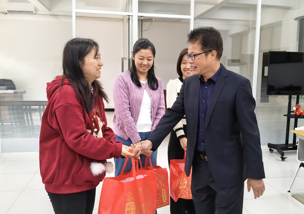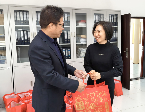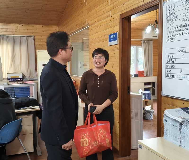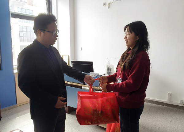 许志超书记为管理学院、西语学院党总支书记送上节日礼物