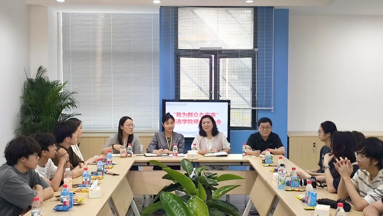为深入学习贯彻关于树立和践行正确政绩观的重要论述,切实转变工作作风、密切联系师生,畅通沟通交流渠道,精准解决学生学习生活中的实际问题,4月2日下午,西语学院在H303会议室召开“我为群众办实事”师生座谈会。学院党总支书记于凤颖主持会议,副院长唐彤、余珊,党总支书记助理曾海滢,全体辅导员及各班学生代表参会。
