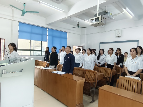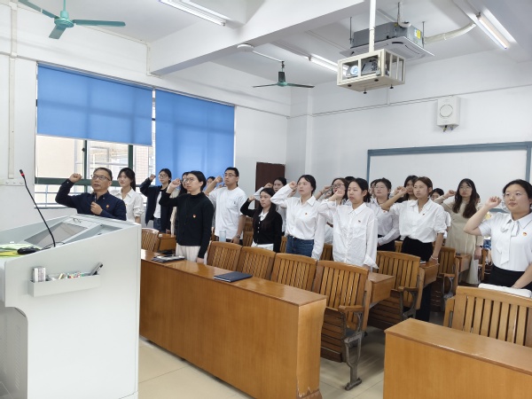 接着,会议举行了庄严的入党宣誓仪式。新党员面向党旗,高举右拳,许下铿锵誓言;老党员一同重温入党誓词,字字千钧,彰显了对党的无限忠诚与为党的事业奋斗终身的坚定决心。