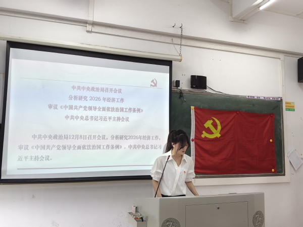 会议首先组织学习了习近平总书记在12月8日中共中央政治局会议上的重要讲话精神。在交流分享环节,孔依婷同志结合学习内容,从深刻领会经济工作战略部署、充分认识党对依法治国的领导作用、自觉强化政治担当三方面分享了心得体会,表示将以会议精神为指引,切实履行党员的职责使命。