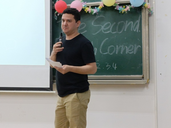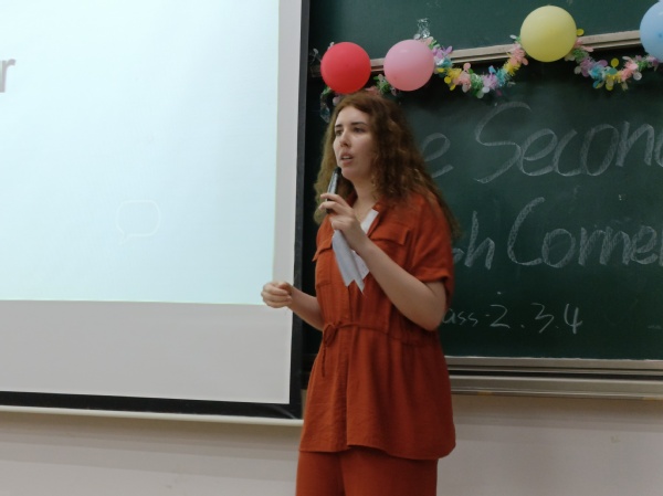 本期活动一共分为五个环节:第一个环节是主题演讲——演讲者围绕本期英语角的主题发表自己的观点和看法;第二个环节是配音环节——配音者选择与主题相关的影视片段进行配音;第三个环节是指导老师点评——指导老师分别对主持人、演讲者和配音者们的表现进行点评,指出其中的优点和不足之处并给出建议;第四个环节是游戏环节——由主持人主持,本次“You act, I guess”你来比划我来猜活动,要求每个班派出两名选手参赛,每组一人用英语描述、一人猜词,答对一题得一分,遇难题可喊“pass”跳过,最终积分最高的成员们将获得精美小礼品;第五个环节是自由讨论环节——同学们和老师就本期主题进行了深入讨论。