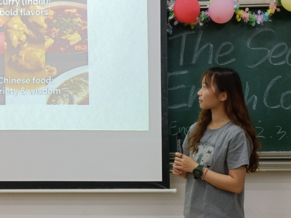 在演讲过程中,三位演讲者曾妤欣、马紫薇、石益玮三位同学紧扣本期Food, Drink and Cuisine主题,从食物的意义、饮品与生活、美食与文化等角度,分享了饮食带来的能量与快乐、各地特色风味与多元饮食文化。他们用真实的体验与生动的表达,带领大家感受美食背后的情感联结与文化魅力,鼓励大家用心品味生活、勇敢探索世界,在舌尖与行走中收获成长。
