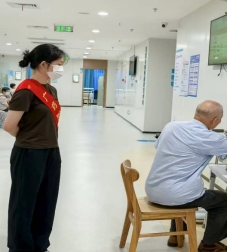 钟幸仪同志走进广东药科大学附属第一医院,开展“医路童行・薪火传承” 导医导诊志愿服务,4 小时坚守门诊、体检区域服务岗位。她为就诊患者和市民提供专业就医指引,重点协助不会使用电子产品的老年群体完成自助挂号、缴费等操作,把为人民服务的宗旨融入每一次指引、每一次按键,让基层医疗服务更有温度,以平凡小事彰显党员的先进性。