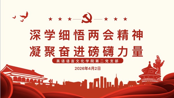 为深入学习贯彻2026年全国两会精神,引导广大青年学生精准把握国家发展脉搏,将个人理想融入国家发展大局,英文学院第二党支部于4月2日精心组织召开全国两会精神专题学习会,全体党员同志齐聚一堂,共学共悟两会精神。
