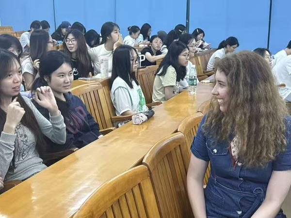 在自由讨论环节中,外教Aqsa和Leina与同学们围绕三大话题展开交流:“谈谈你最喜欢的运动及喜爱原因”,“分享你参加体育比赛的经历”,“说说让你印象最深刻的奥运会或运动员及其理由”。现场氛围热烈融洽,同学们踊跃分享自身经历与独到见解,在与外教的互动中,同学们不仅锻炼了英语表达能力,也真切体会到了跨文化交流的乐趣。