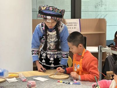 此次活动中,孩子们不仅通过绘本深入了解了布依族文化的内涵,更通过亲手绘画簸箕画,近距离感受了非遗技艺的魅力。每一件簸箕画作品,都象征着孩子们与传统文化的亲密联结。对于主讲老师不只是讲授知识,更是传承人,连接着非遗的过去、现在和未来。