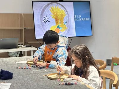 活动进入簸箕画手工制作环节。主讲老师先逐一讲解了绘画、填色等制作步骤。孩子们充分发挥想象力与创造力,认真投入簸箕画制作中。孩子们用颜料在簸箕上勾勒稻浪翻滚、水牛犁地的画面;每一笔色彩、每一个图案,都承载着布依族对土地的敬畏与对生活的热爱。