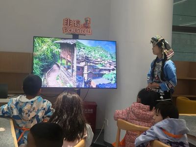 活动开始,围绕布依族的民风民俗展开。靛蓝浸染的传统服饰,依山而建的吊脚楼和香气升腾的五色糯米饭深深的吸引着孩子们的注意力。活动中穿插着布依族文化知识趣味问答。孩子们积极参与其中,沉浸式体验了布依族传统文化的独特魅力。现场互动踊跃,气氛热烈。