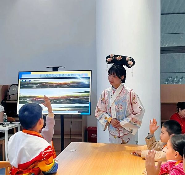 1. 服饰关:老师详解满族男女传统服饰特色,男生的马褂、瓜皮帽,女生的长袍、花盆底鞋、各式旗头,还有象征吉祥的云纹刺绣,孩子们还分组朗诵服饰儿歌,用朗朗童声记住满族服饰的独特韵味;