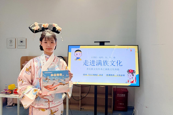 闯关结束后,老师带来满族经典绘本《白云格格》,为孩子们讲述这个充满善意的民族故事:善良的白云格格在人间遭遇洪水时,倾力帮助小鸟筑巢、救助受灾的生灵,哪怕历经考验,始终坚守着乐于助人的本心,最终化作白桦树守护世间。