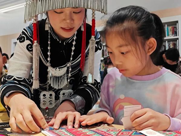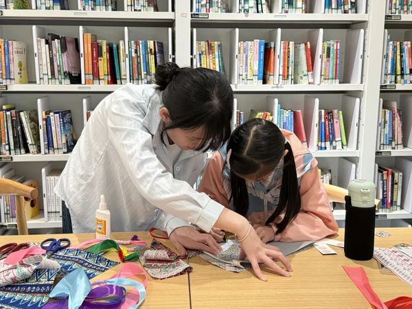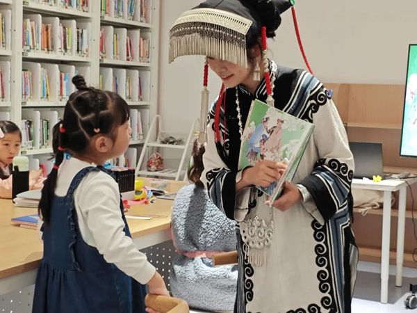 2025年4月4日,白云图书馆与我校教育学院联合举办的“非遗·彝族”绘本讲读与三角包制作公益活动,于白云图书馆负一楼少儿阅览区圆满落幕。此次活动由我院22级学前教育专业李子同学担任主讲教师,她用生动的叙述和多样的互动方式,引领小朋友们探索彝族非遗文化的独特魅力。同时,23级小学教育2班的姚曼琳同学和24级小学教育2班的何嘉恒同学担任助教。教育学院学前教育系主任王晟老师、教育学院曹谨老师也莅临现场,共同见证了这场意义非凡的公益教育活动。